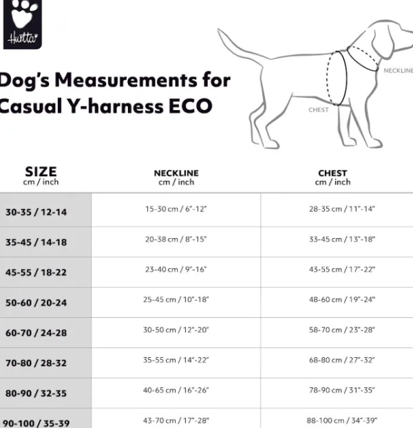 Hurtta Casual Y-Harness ECO -valjaiden tiedot: