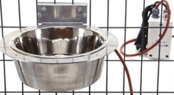 - Koiratarhan sisäpuolelle kiinnitettävä, lämmitettävä juomakuppi