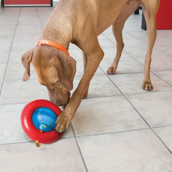 Kong Gyro varmasti viihdyttää nelijalkaista ystävääsi. Sen vastustamaton pyörimis- ja kääntötoiminta pitää koirat kiehtovan ja lumoavan lelun parissa.