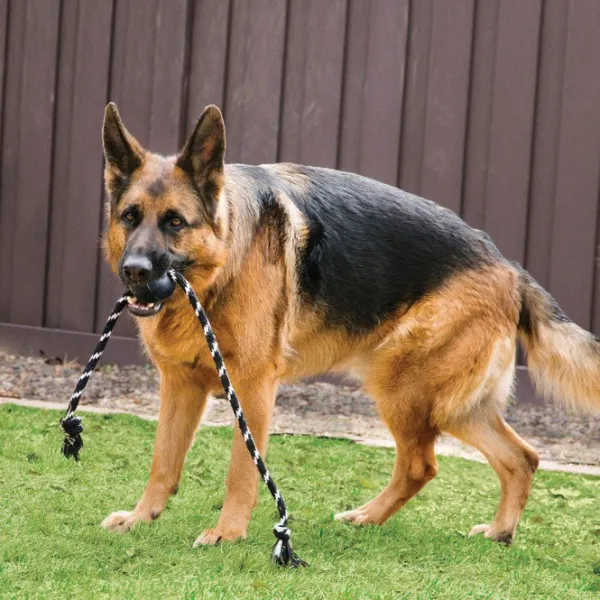 100 % puuvillasta valmistettu köysi palkitsee myös sopivaa puremiskäyttäytymistä samalla kun se hieroo hampaita ja ikeniä. Kaikki tämä johtaa leikkisiin hetkiin, jotka tarjoavat henkistä stimulaatiota ja rikastuttavaa sitoutumista.