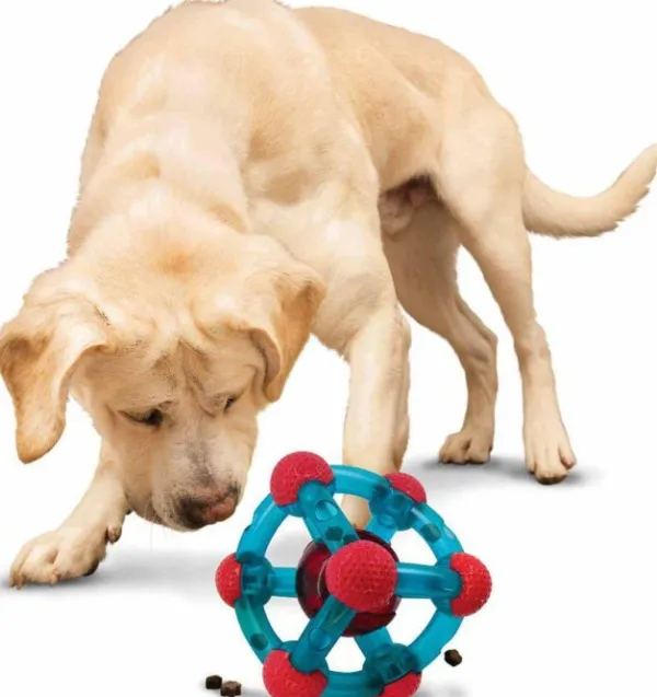 Leikkiessään lelulla, pienet herkut liikkuvat putkien läpi ja vapautuvat, kun lelu pyörii ja pomppii. Pyöreät pallokulmat vaimentavat ääntä hiljaisempaa toimintaa varten.