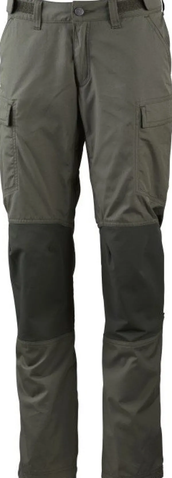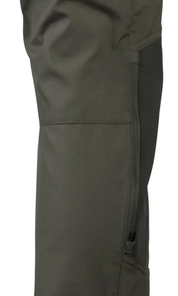 Pohkeiden sivuilla olevat tuuletusventilaatiot viilentävät lämpimissä olosuhteissa. Vyötärö on säädettävissä tarrakiristyksellä, ja housuissa on etutaskut sekä läpällä suljettavat reisitaskut.