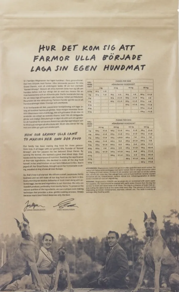 Magnusson Meat & Biscuit Junior on täysrehu koiranpennuille ja nuorille koirille. Se sopii myös tiineenä oleville ja imettäville narttukoirille. Magnusson Junior on hitaasti uunissa kypsytettyä kuivaruokaa, johon on käytetty ainoastaan tuoretta ruotsalaista lihaa. Se on korkealaatuista ja maistuvaa koiranruokaa!