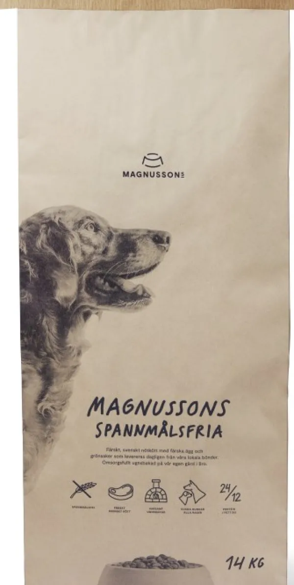 Ruotsissa uunipaistettu kuivaruoka, joka sisältää yksinomaan tuoretta, ruotsalaista lihaa, ei lihajauhoa. Korkealaatuinen ja erittäin maistuva ruoka. Pala on myös hieman pienempi kuin Magnussonsin muut aikuisille koirille tarkoitetut ruoat.
