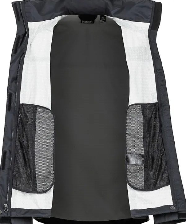 Takki on valmistettu kierrätetystä nailonista ja siinä on sadetta ja tuulta pitävä Marmot® NanoPro™ Eco -kalvo. Takissa on tuuletusvetoketjut hihojen alla, jotka mahdollistavat tehokkaan ilmansäätelyn vaihtelevissa sääolosuhteissa. Ulkopuolella on kaksi vetoketjullista taskua, joista toinen toimii takin pakkauspussina. Säädettävän hupun saa tarvittaessa rullattua piiloon takin kauluksen sisään. Takin Angel-Wing Movement – leikkaus sallii käsien laajat liikeradat ilman, että takin helma nousee. Säädettävä helma ja hihansuut viimeistelevät takin istuvuuden.