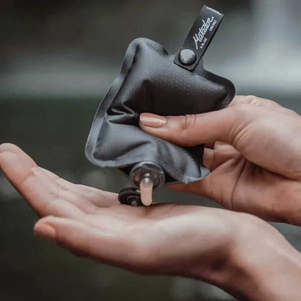 Matador FlatPak Toiletry Bottle on ultrakevyt ja tilaa säästävä pullo, joka on suunniteltu tehokkaaseen matkustamiseen shampoon, saippuan, voiteiden ja muiden tuotteiden kanssa, kun tila ja paino ovat ratkaisevia.