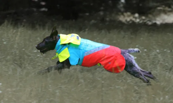 Kun saavut haukulle etkä näe saalista – kuten tiedät, tämä on yleistä – voit suoraan nähdä, mihin suuntaan koira on kääntynyt, myös tiheässä maastossa, koska liivi on kolmivärinen. Liivi on myös varustettu heijastimilla, jotta se näkyy kaikista kulmista.