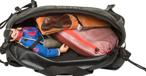 Mystery Ranchin Hip Monkey -vyölaukku on valmistettu kestävästä materiaalista, ja sitä voi kantaa myös olkapäällä. Laukun sivuilla on kompressioremmit, ja edessä olevan pikkutaskun sisällä on kiinnitysrengas avaimille. Tilavaan vyölaukkuun mahtuvat hyvin kaikki tärkeimmät tarvikkeet.