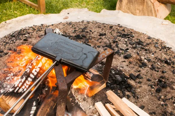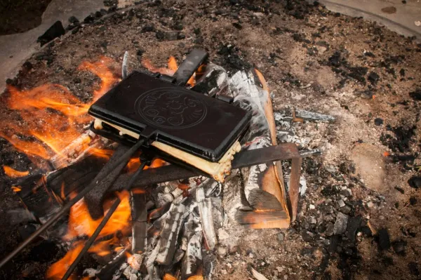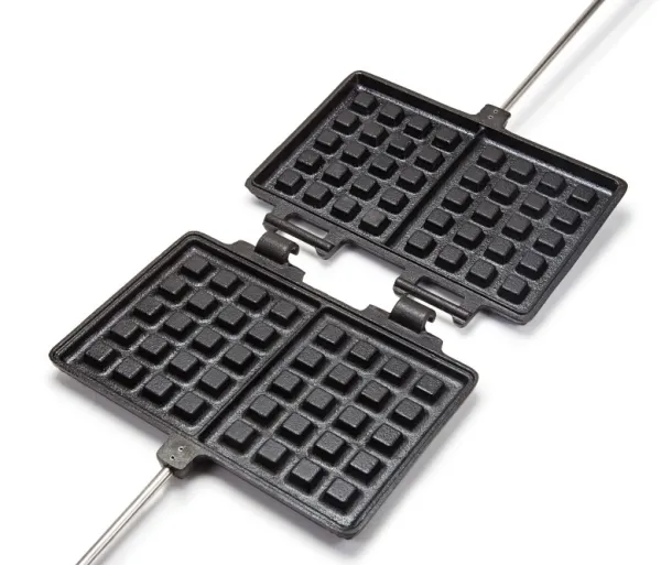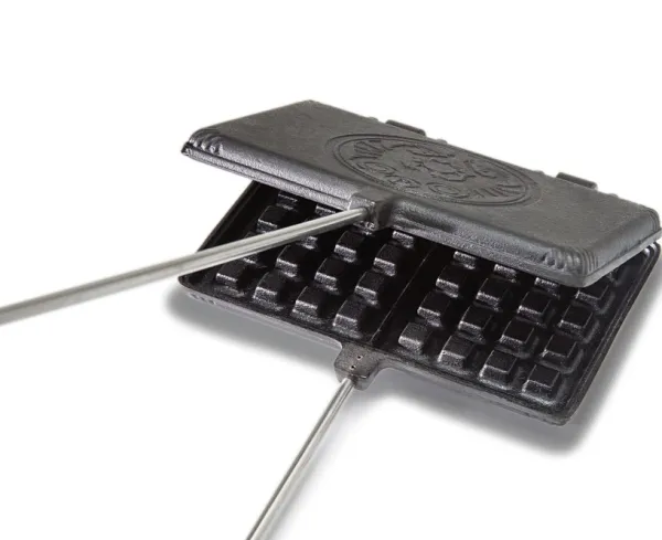 Vohveliraudalla voi paistaa kaksi 9 x 11cm vohvelia. Kätevän lukituskoukun ansiosta vohvelitaikina ei pääse karkaamaan muotin välistä. Kun rauta on kuumennettu, vohvelit voi paistaa pelkän varatun lämmön avulla. Taikina kypsyy tasaisesti kullanruskeaksi ja rapeaksi. Kahva on mukava kädessä, ja varren pituus pitää huolen siitä, ettei tarvitse mennä liian lähelle nuotiota. Valurautainen muotti on esikäsitelty ja heti käyttövalmis.