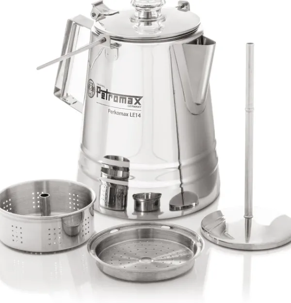 Kun astiaa lämmitetään, vesi nousee ylös pientä putkea pitkin. Pyöreä kahvisuodatin sijoitetaan putken päähän. Kuuma vesi kulkee putkea ylös kahvin päälle ja valuu sen läpi. Kahvin läpi mennyt vesi sekoittuu taas pohjalla ja nousee taas ylös. Mitä kauemmin vesi kiertää perkolaattorissa, sitä vahvempaa kahvia saadaan. Petromax-perkolaattori on valmistettu ruostumattomasta teräksestä, ja siitä on saatavilla kaksi eri kokoa. Tämä pienempi malli keittää kerralla noin 2,1 litraa (noin 14 kuppia).
