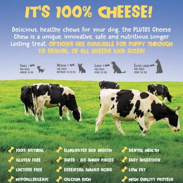 Plutosin juustolla ja lampaanlihalla maustettu koiranpuruluu on 100 % luonnollinen ja valmistettu korkealaatuisesta maitoproteiinista (kaseiini), joka on laktoositon ja rasvaton.