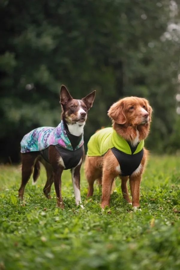 JumppaPomppa on erittäin joustava ja monikäyttöinen koiran lämpöpaita. Pehmeän fleecen ja vettä hylkivän lämpötrikoon yhdistelmä sopii ympärivuotiseen käyttöön. Yläosa on valmistettu antistaattisesta ja erittäin joustavasta fleecestä, jonka ansiosta paita on helppo pukea ja riisua. Alapuoli on valmistettu vettä hylkivästä lämpötrikoosta, joka suojaa koiran vatsaa ja rintaa.