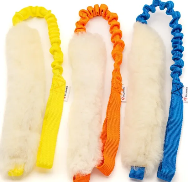 Tika Absorber merkiltä Psarvard on harjoituslelu, joka on valmistettu luonnollisesta lampaanvillasta ja varustettu tukevasti ommellulla hihnalla kestävyyden takaamiseksi.