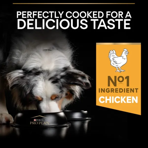 PURINA PRO PLAN DOG Medium Adult with OPTIBALANCE sisältää runsaasti kanaa ja varmistaa, että koira saa kaiken täysimääräiseen elämään tarvitsemansa ravinnon.