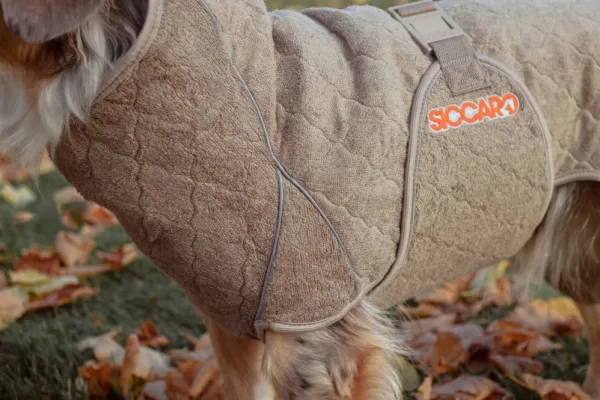 Siccaron Solution Drying Robe on erittäin imukykyinen ja ergonomisesti muotoiltu kuivausloimi koirille. Solution-kuivausloimi on muotoiltu uudelleen asiakkaiden toiveiden ja palautteen perusteella. Uusi malli on 20 % peittävämpi kuin edeltäjänsä, joten se peittää hyvin myös koiran takaraajat. Erityisen hyvin tämä loimi sopii esimerkiksi kultaisillenoutajille, spanieleille ja settereille, mutta yhtä hyvin se käy myös muille koiraroduille. Ergonomisesti istuvassa loimen saumoissa on heijastavaa lankaa, joka parantaa näkyvyyttä pimeällä. Lisäksi loimessa on uudet optimoidut hakaset sekä kestävät, luistamattomat soljet. Kaulassa on aukko talutushihnalle.