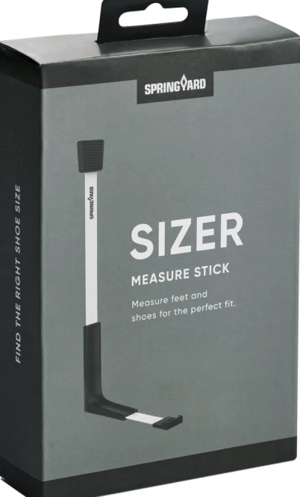 Springyard Sizer on kätevä mittatikku oikean kenkäkoon löytämiseksi. Mittaamalla kenkien sisämitan ja jalkasi pituuden voit helposti tunnistaa optimaalisen kenkäkokosi.