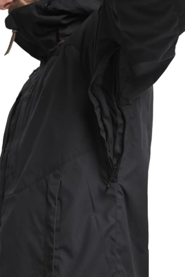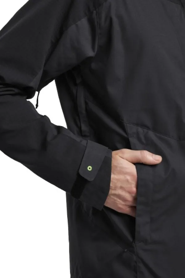 Takissa on tehokkaasti säältä ja kylmältä suojaavat kaulus ja huppu. Huppu, hihansuut ja helma ovat säädettäviä, joten saat aina täydellisen istuvuuden. Kainaloissa on ventilaatiovetoketjut, joiden avulla tehostat ilmanvaihtoa. Takissa on myös kaksi etutaskua, kaksi rintataskua sekä sisätasku. Kaikissa taskuissa on vetoketjut.