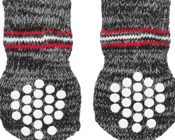 Trixien puuvillaisissa koirantossuissa on liukuesteillä varustetut pohjat, jotka antavat hyvän pidon liukkailla pinnoilla. Tossut soveltuvat hyvin selkä- ja nivelongelmista kärsiville koirille, ja niiden käyttö myös edistää loukkaantuneiden tassujen paranemista. Lisäksi tossut suojaavat lattioita ja huonekaluja naarmuuntumiselta. Koko: XS-S.
