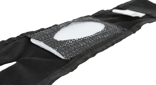Narttusuoja koiran juoksujen ajaksi. Suojaa kodin pintoja ja tekstiilejä tahroilta. Hyvä istuvuus säädettävien hihnojen ansiosta. Pikalukkokiinnitys. Mukana tulee kolme vaihtosidettä. Koko M: 40 – 49 cm.