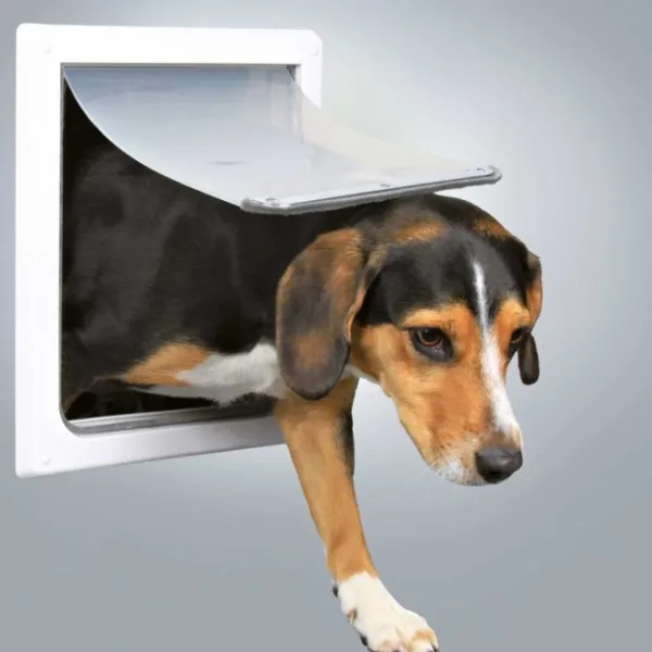 Muovinen koiranovi keskikokoisille koirille (S-M). Lukittava.