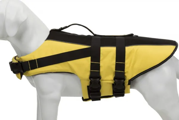 Trixien pelastusliivi koiralle turvaa koiraasi vesileikeissä sekä veneretkillä. Liivi istuu hyvin koiran päällä säädettävien solkien ja nylon-hihnojen ansiosta. Liivissä on D-lenkki hihnaa varten sekä selässä kahva, jolloin koiran käsittely on helpompaa. Keltainen väri ja heijastavat yksityiskohdat lisäävät näkyvyyttä. Anatomisesti muotoiltu. Valmistettu polyesterista.