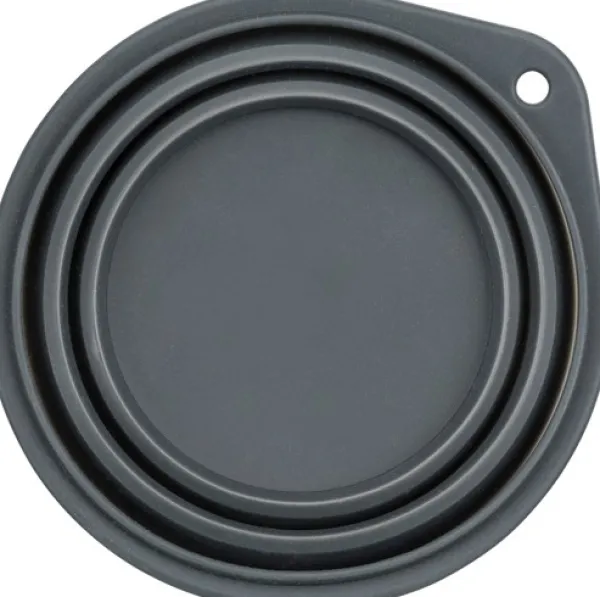 Taitettava silikooninen ruoka- ja vesikulho lemmikille. Täydellinen matkalle, ravintolaan tai vain laukkuun hätätilanteita varten. Reunassa olevan pienen reiän avulla voit kiinnittää kulhon esimerkiksi vyöhön tai repussa olevaan karabiiniin. Kun kulhon reunat taitetaan alas, se muuttuu täysin tasaiseksi ja vie minimaalisen määrän tilaa.