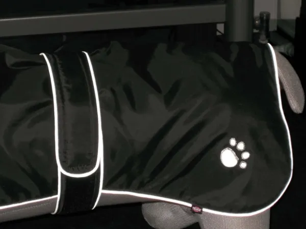 Trixie Orleans on vettähylkivä ja fleecevuorattu takki koiralle. Pitää koirasi tehokkaasti lämpimänä ja kuivana. Takissa on myös heijastimet, jotka parantavat näkyvyyttä pimeällä. Hyvä säädettävyys. Pituus: 35 cm (koiran selän pituus).